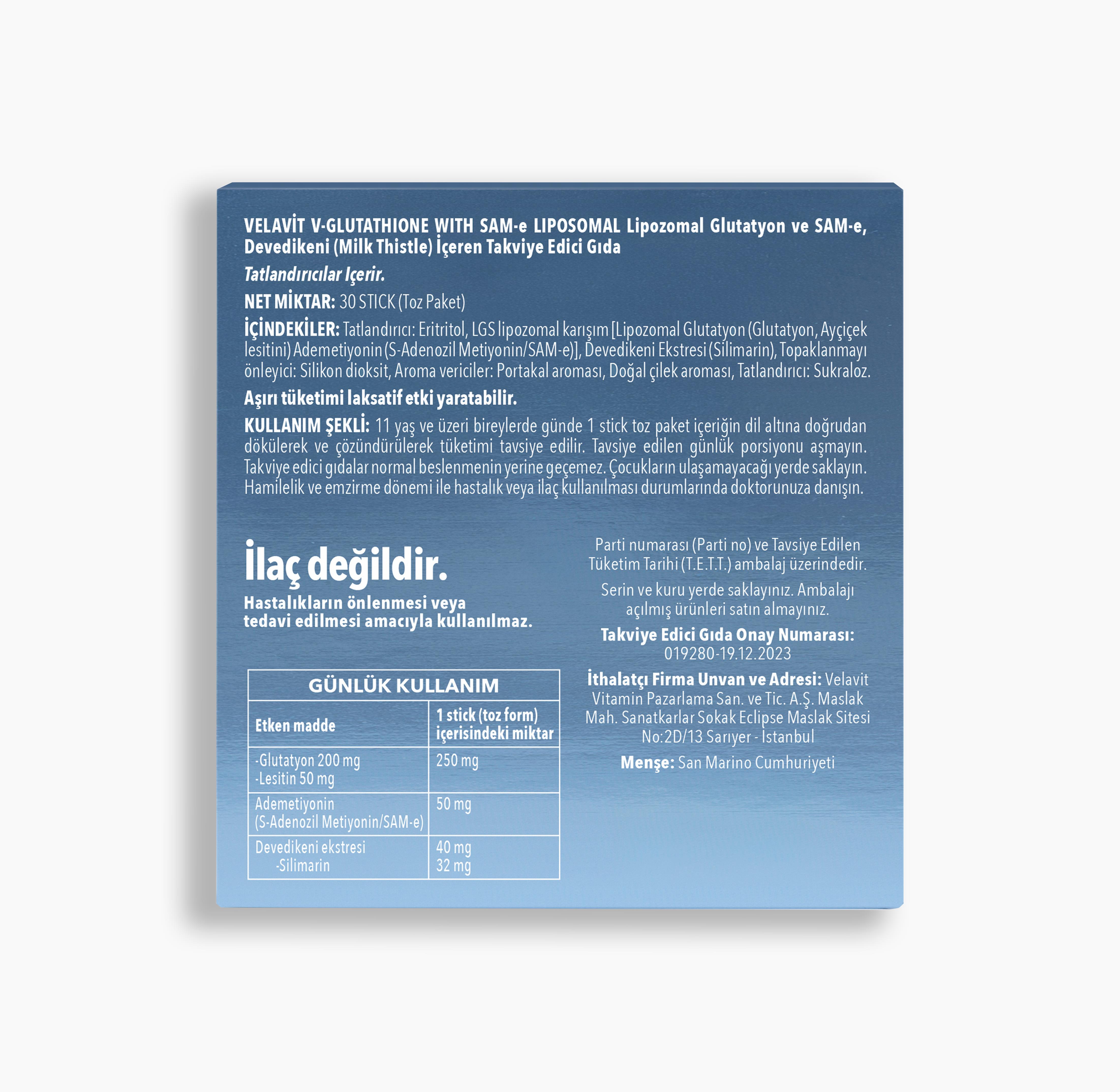 Supplement containing Glutathione, silymarin.